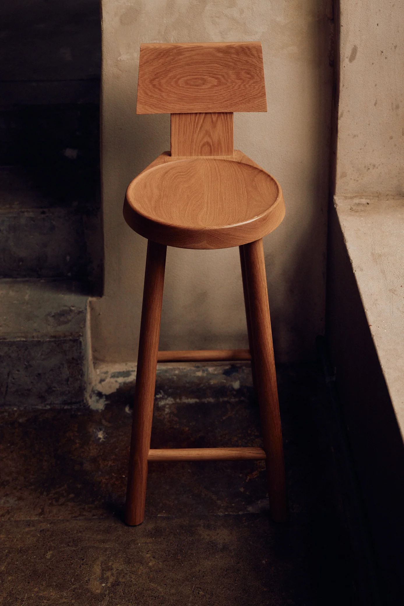 The Alpine Stool is a contemporary take on the folk chairs of the Tyrol region—balancing traditional form with a quiet modern sensibility. Designed for use as a kitchen or bar stool, it offers stability, comfort, and a refined material presence. Crafted entirely from solid timber, the stool is assembled using traditional mortice and tenon joinery for lasting strength. Felt glides come pre-fitted for hard surfaces and can be removed for use on soft flooring. Its sculptural silhouette and compact footprint make it suitable across residential and hospitality spaces. Made to order in Australia.